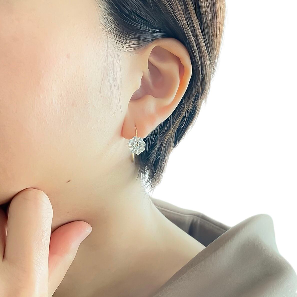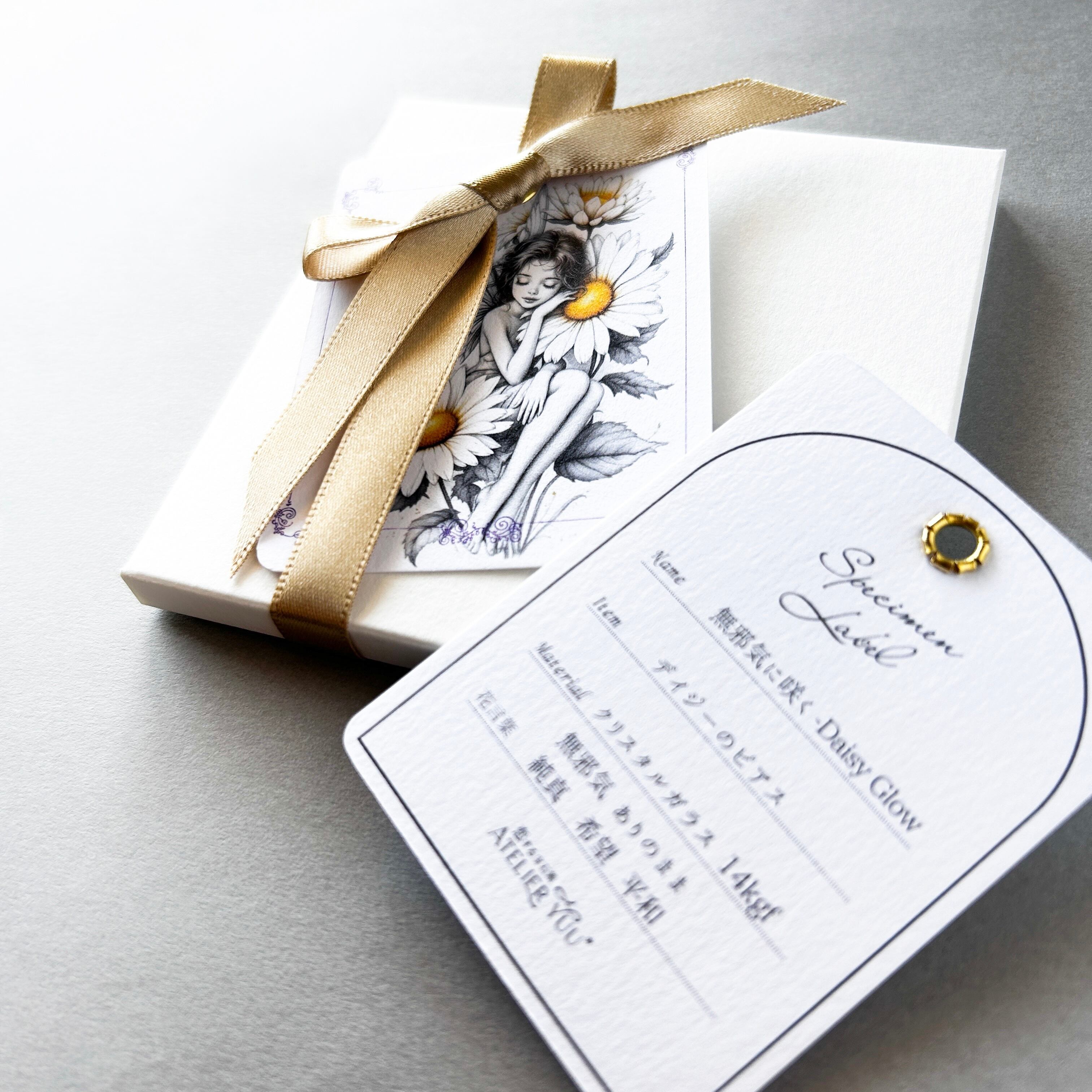 無邪気に咲く - Daisy Glow|透明クリスタルガラスのデイジーピアス(2サイズ展開)14kgf
