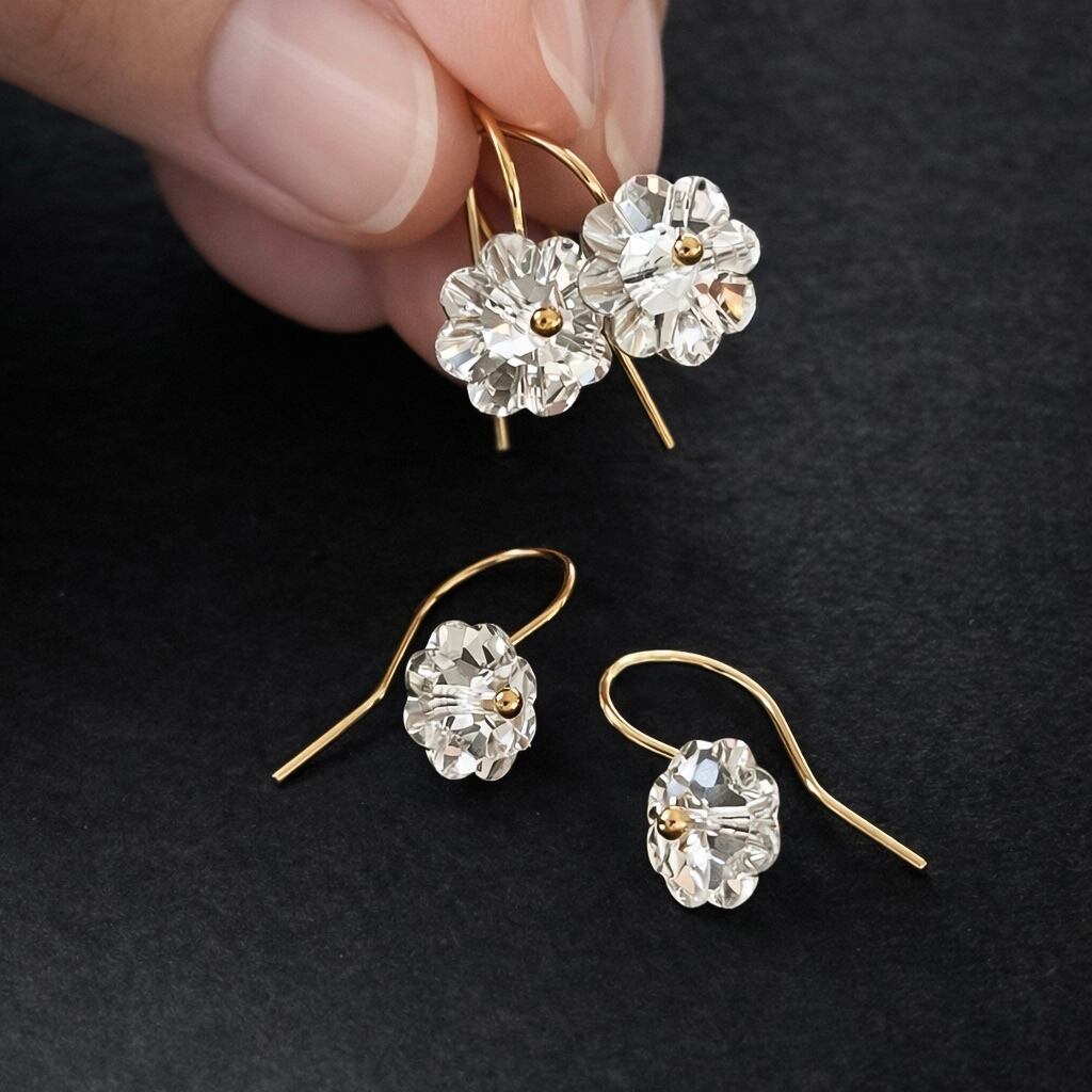 透明なクリスタルで咲く、小さなデイジーの花ピアス。