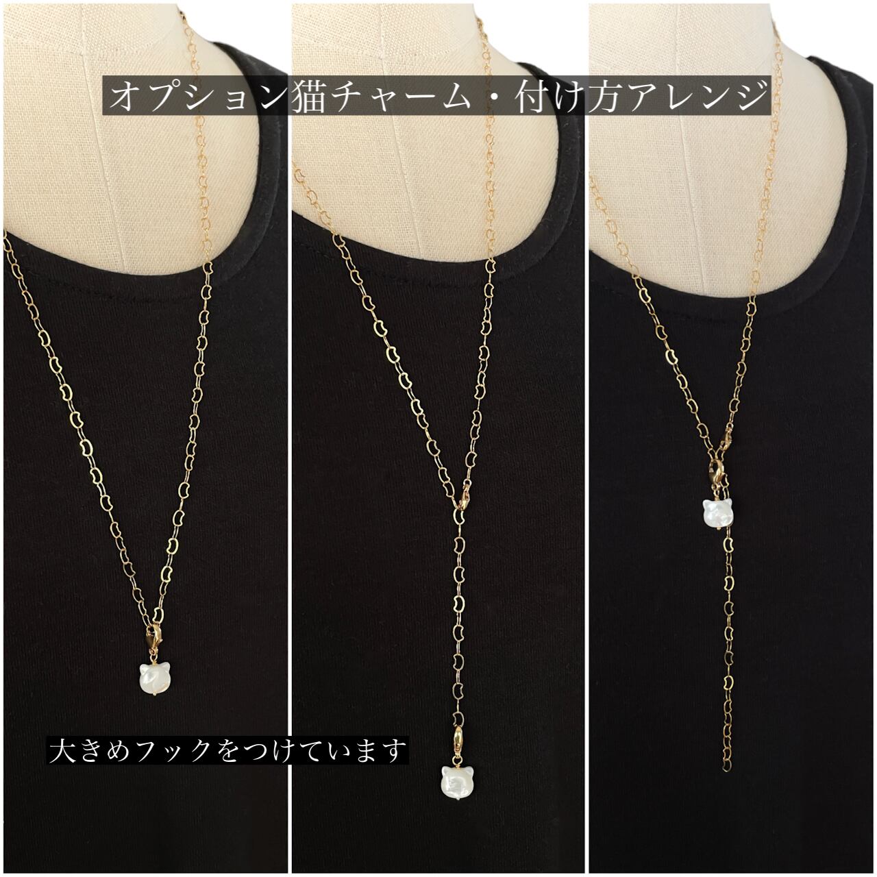 Y字ネックレスや多連ブレスレットとしても楽しめる、2Way〜3Way仕様です。