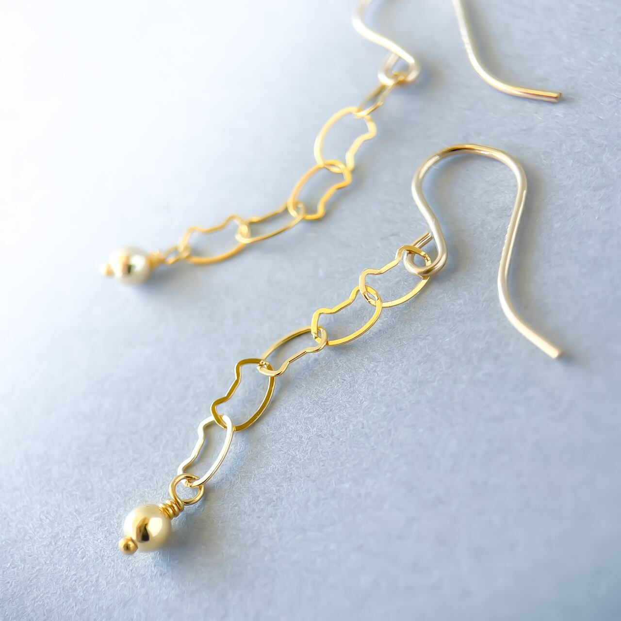 チェーンはシャラリと軽やかで、耳元で繊細に輝きます。