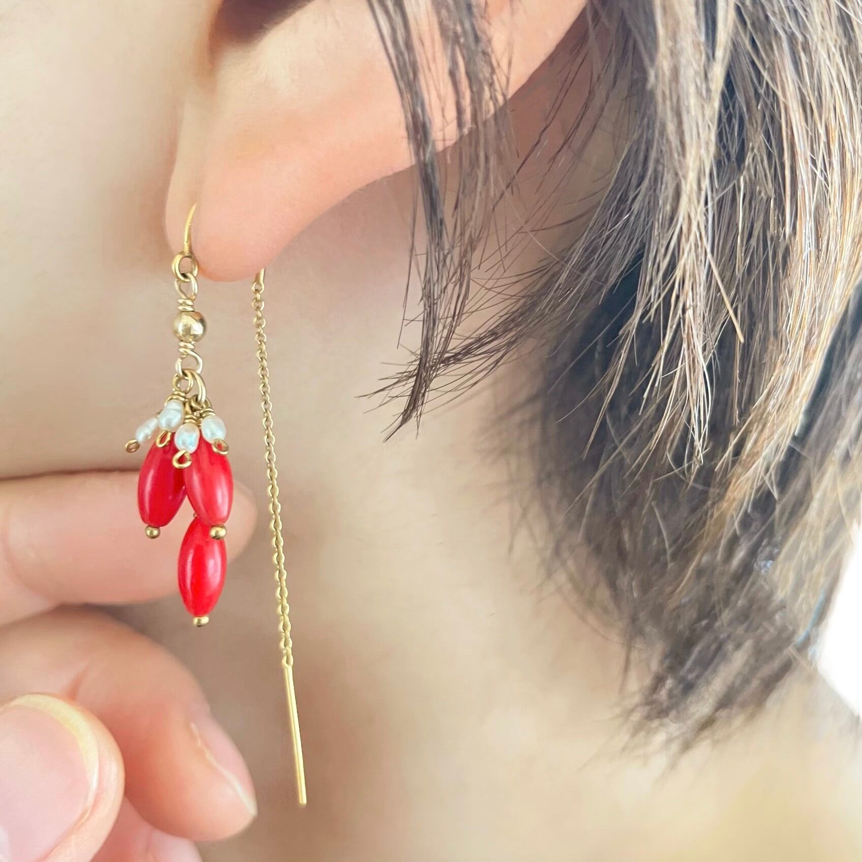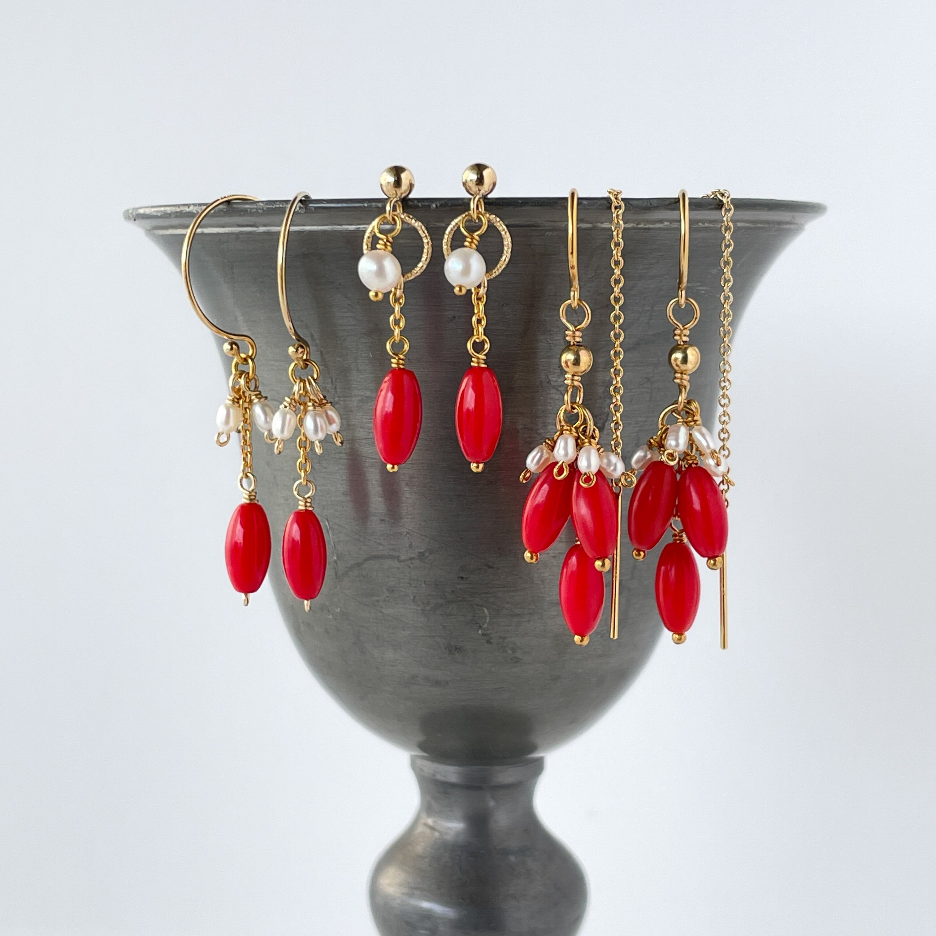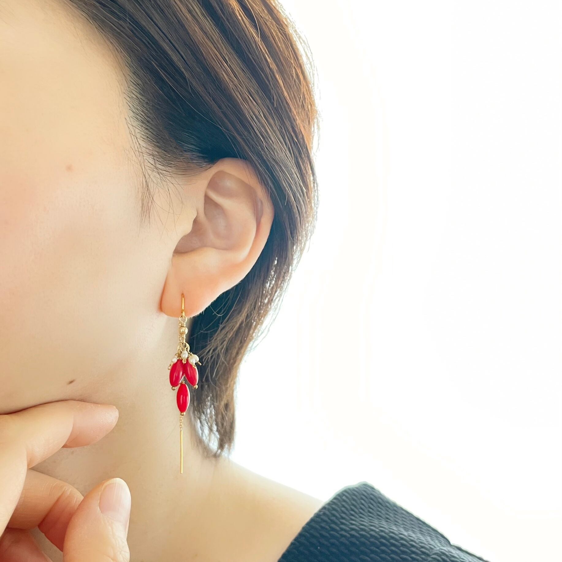 耳元で揺れるたびに鮮やかな赤が装いを華やかに彩り、