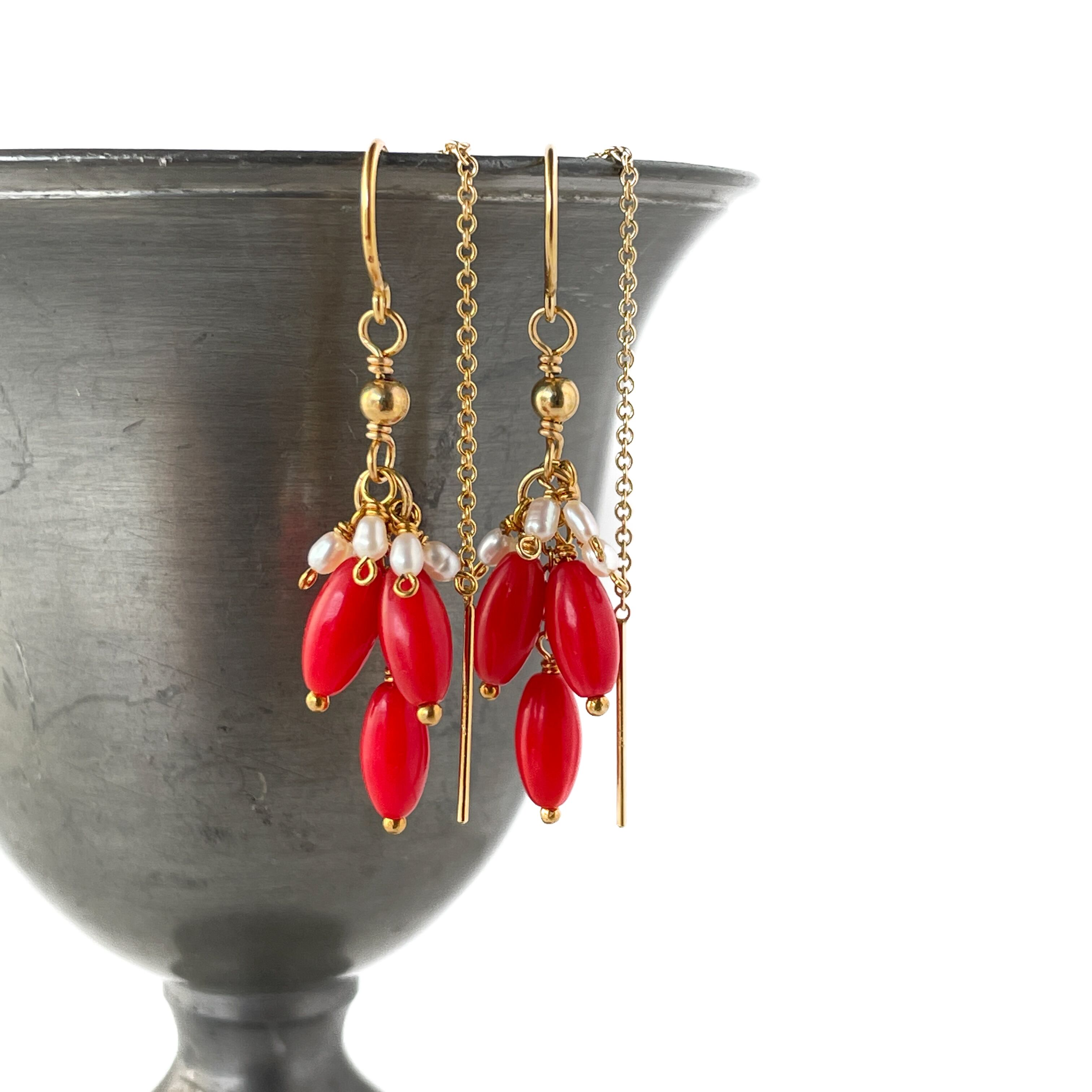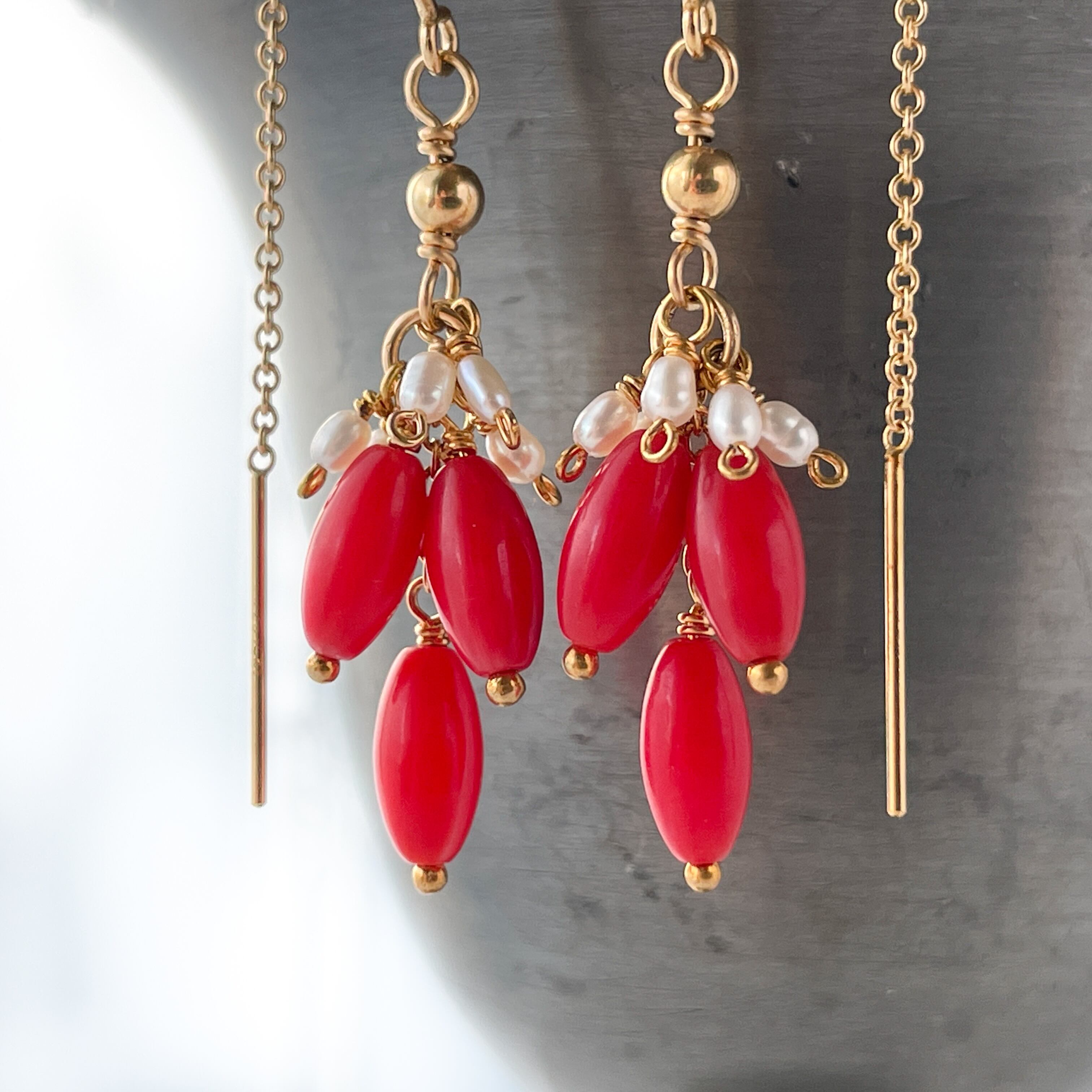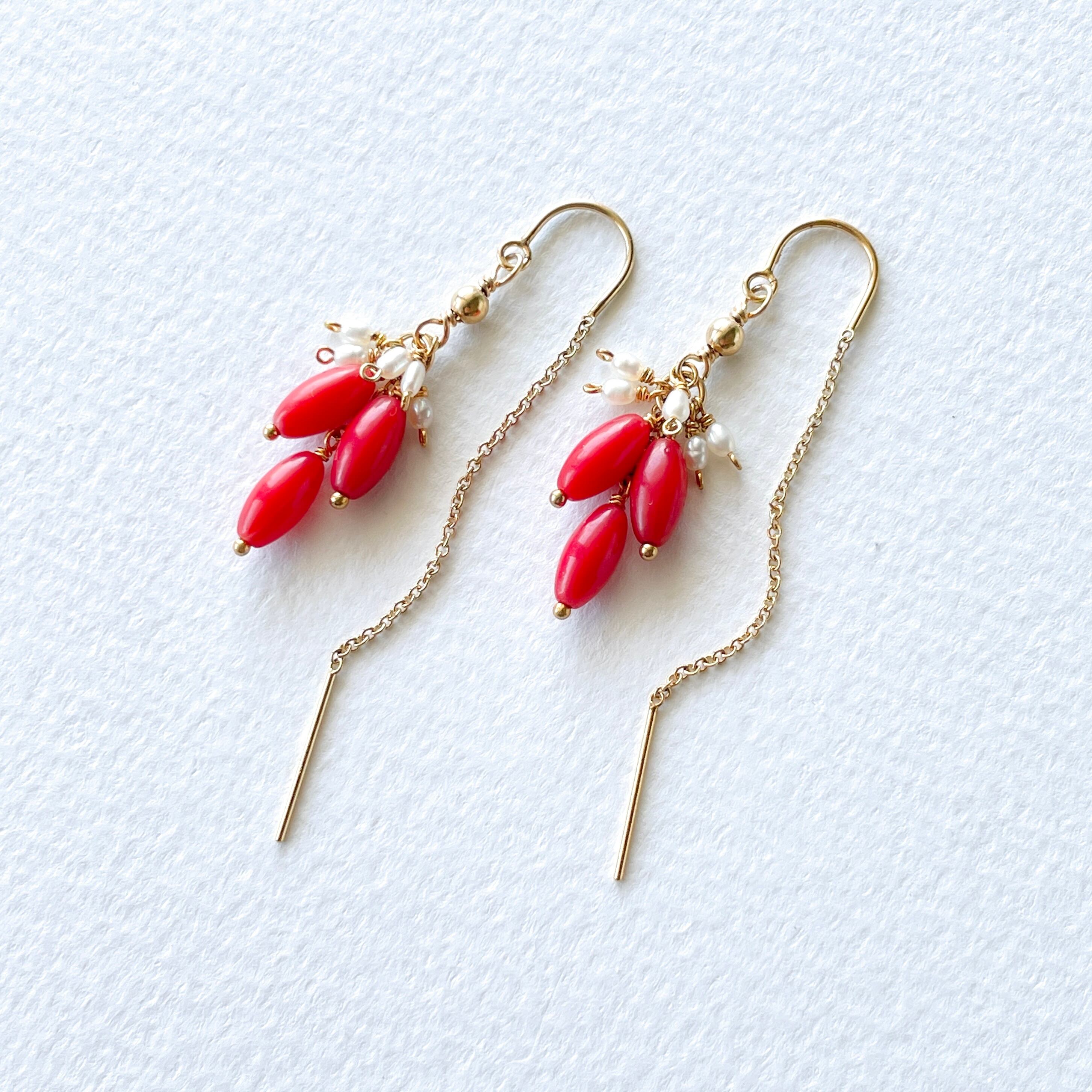 耳元で揺れるたびに鮮やかな赤が装いを華やかに彩り、