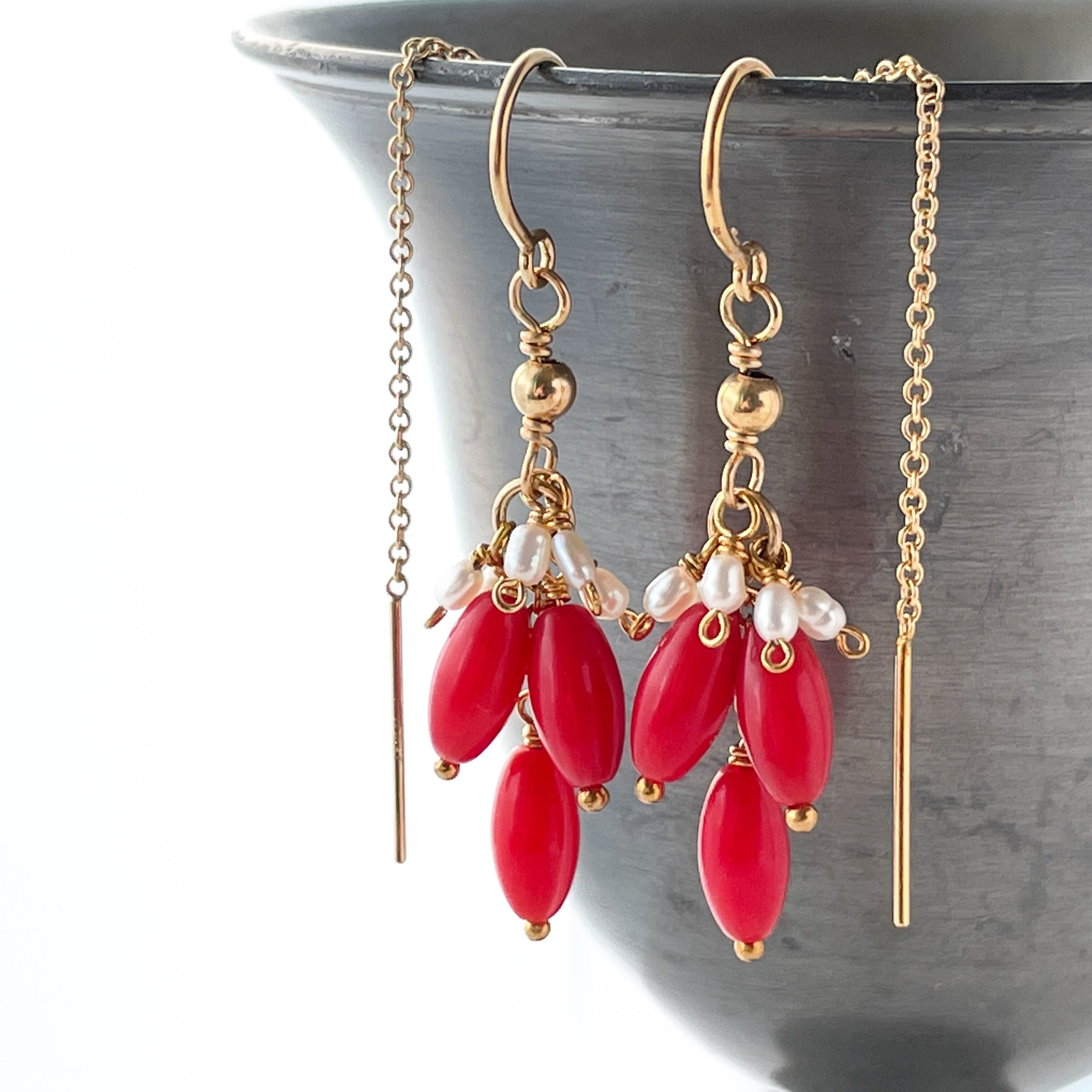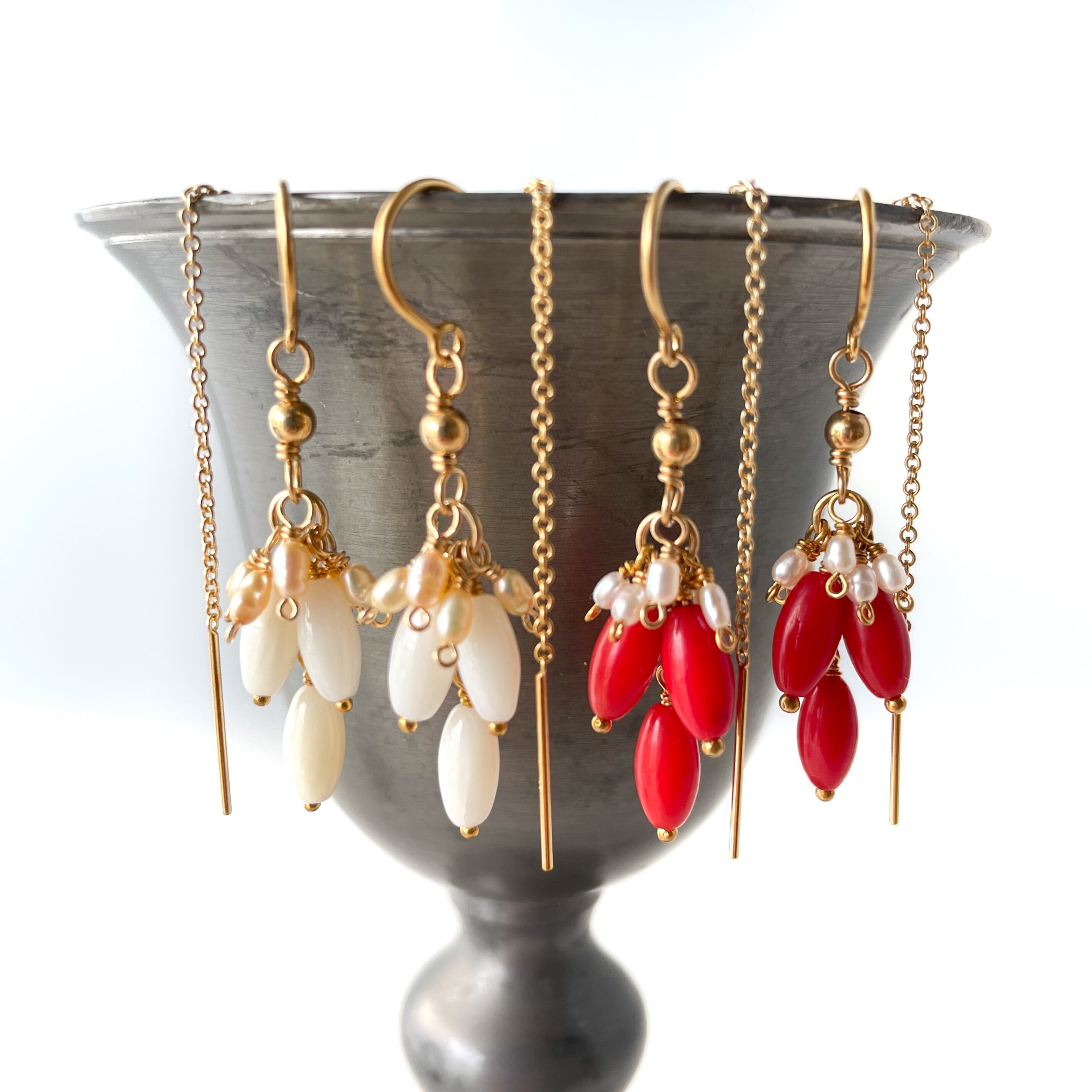◼️珊瑚は白いものを赤色に染めたものです。アクセサリー用の珊瑚は染めが主流で、通常のご使用では衣類やお肌に色移りすることはほとんどありません。汗や皮脂で色味が少し変わることがありますので、ご使用後は柔らかな布で優しく拭き、保管してください。ジュエリークリーナーなどの洗浄液を使用する際は、珊瑚部分が浸からないようご注意ください。