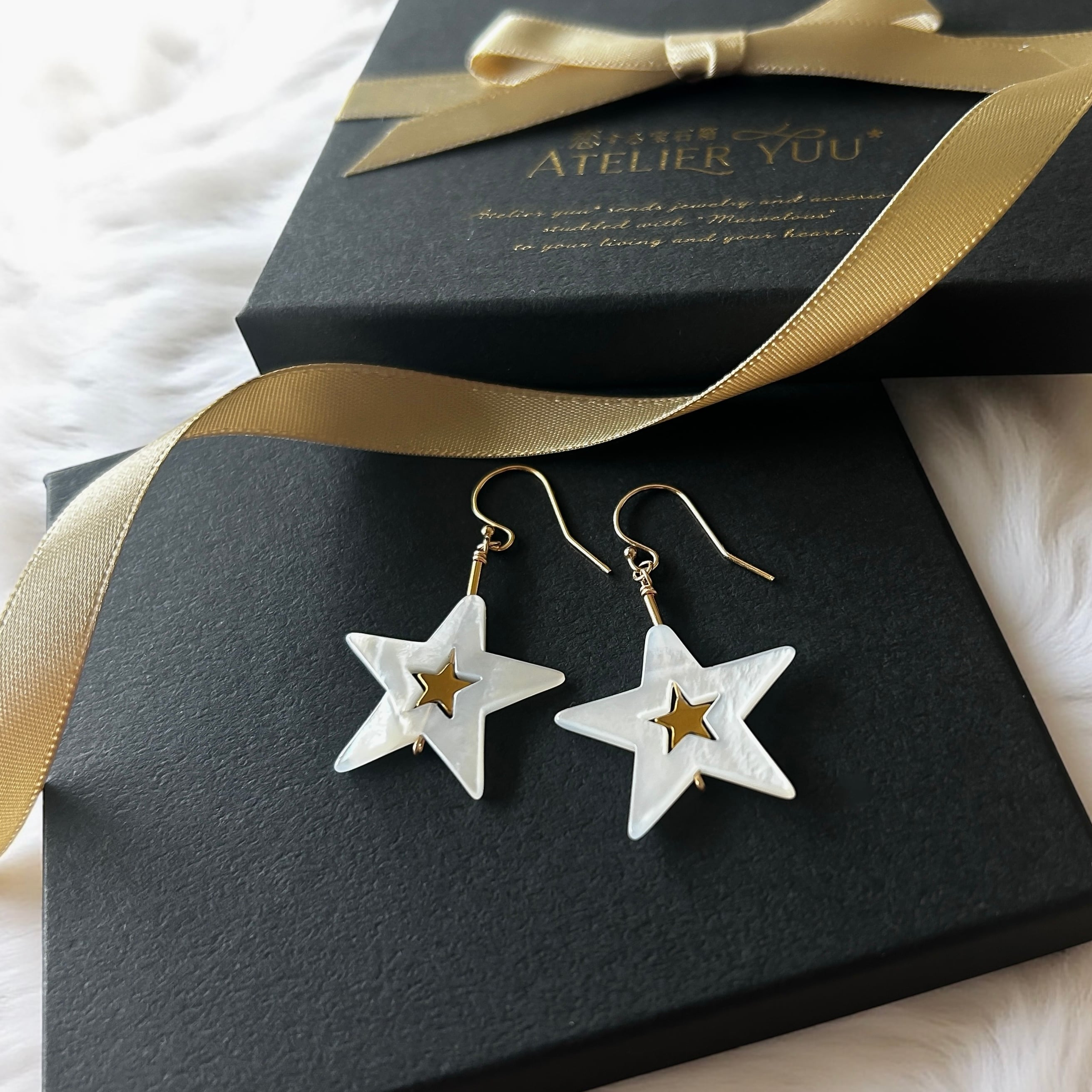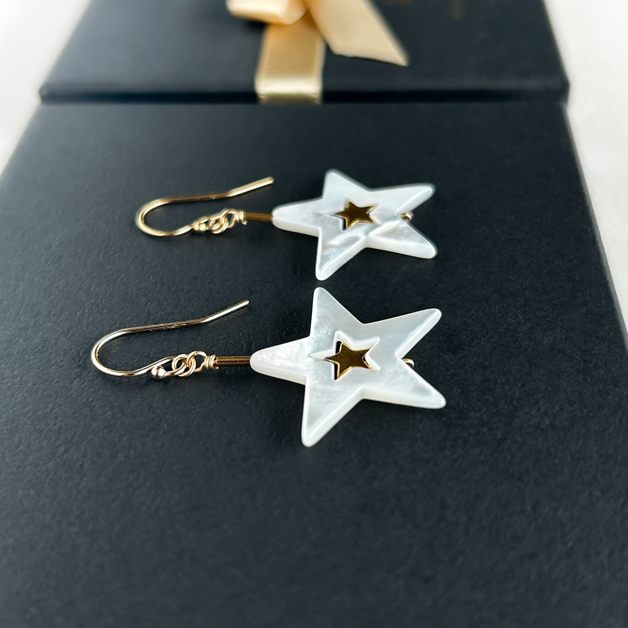 白蝶貝の星に、小さなゴールドの光をはめ込んだ