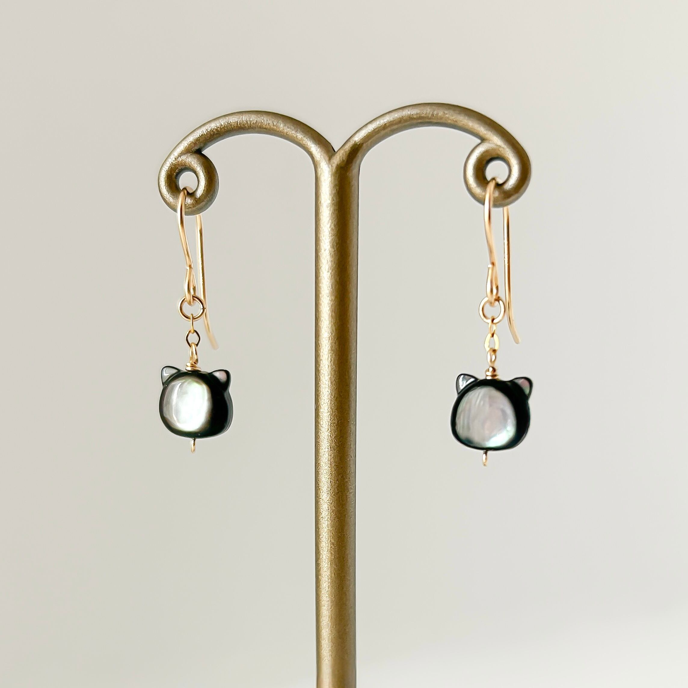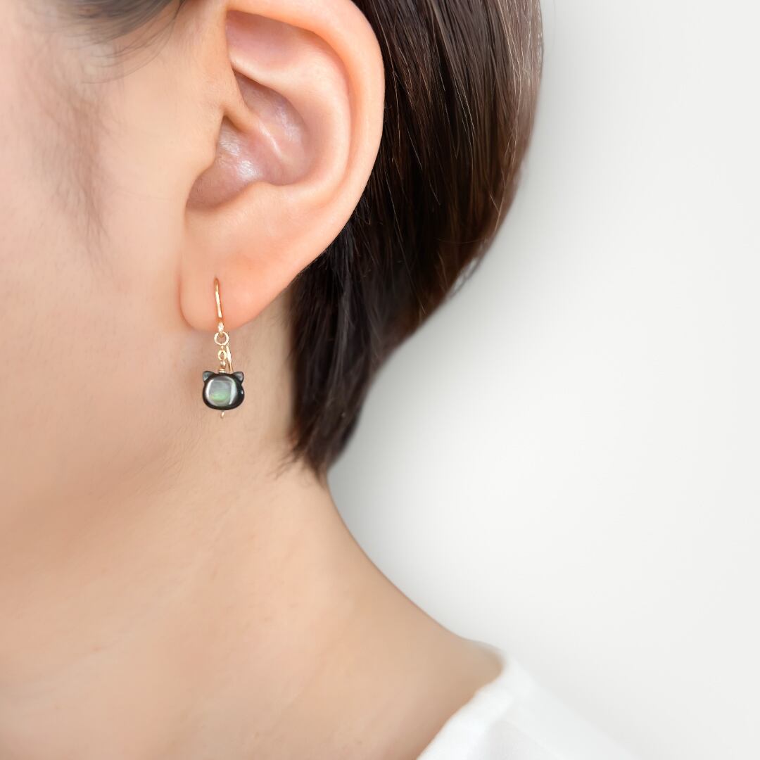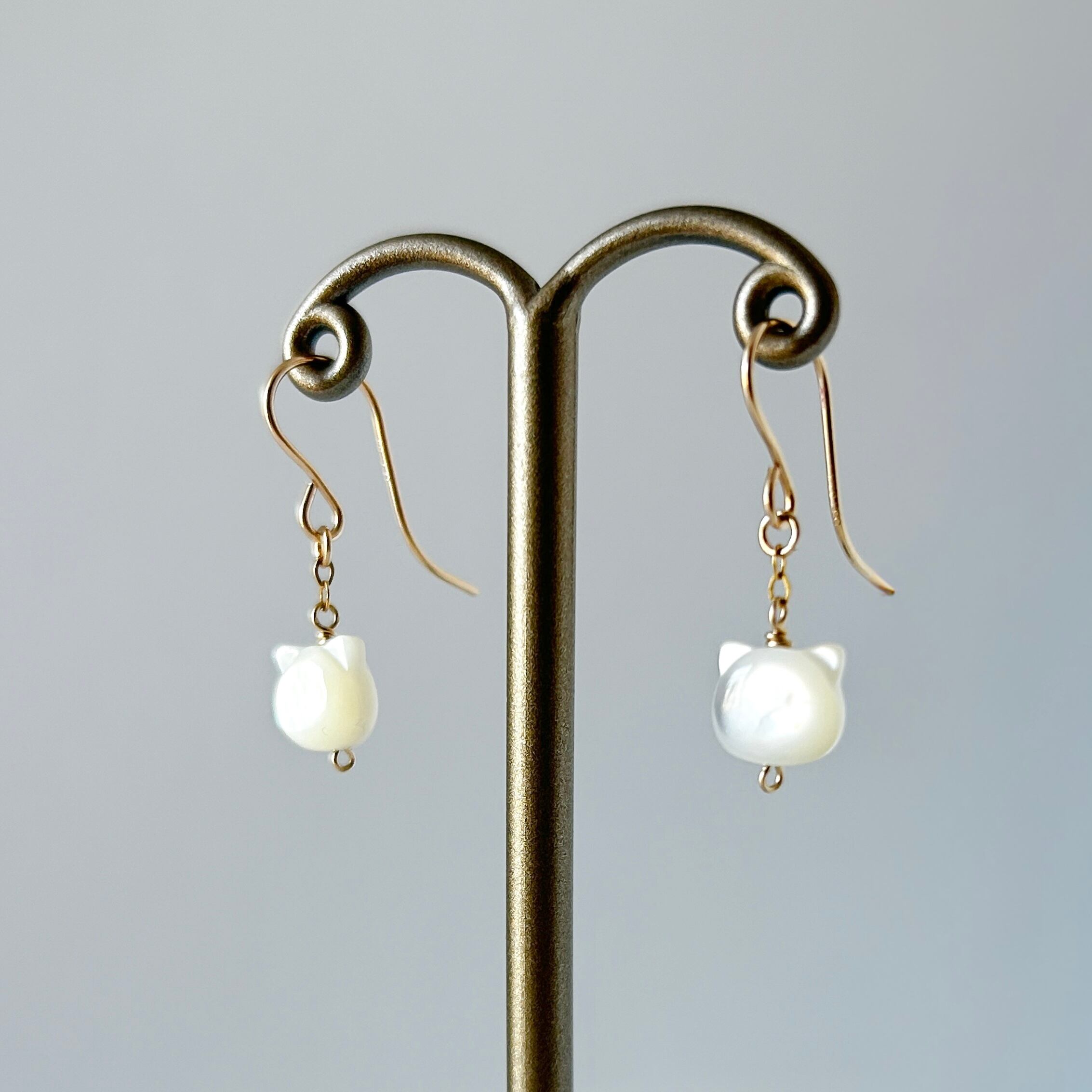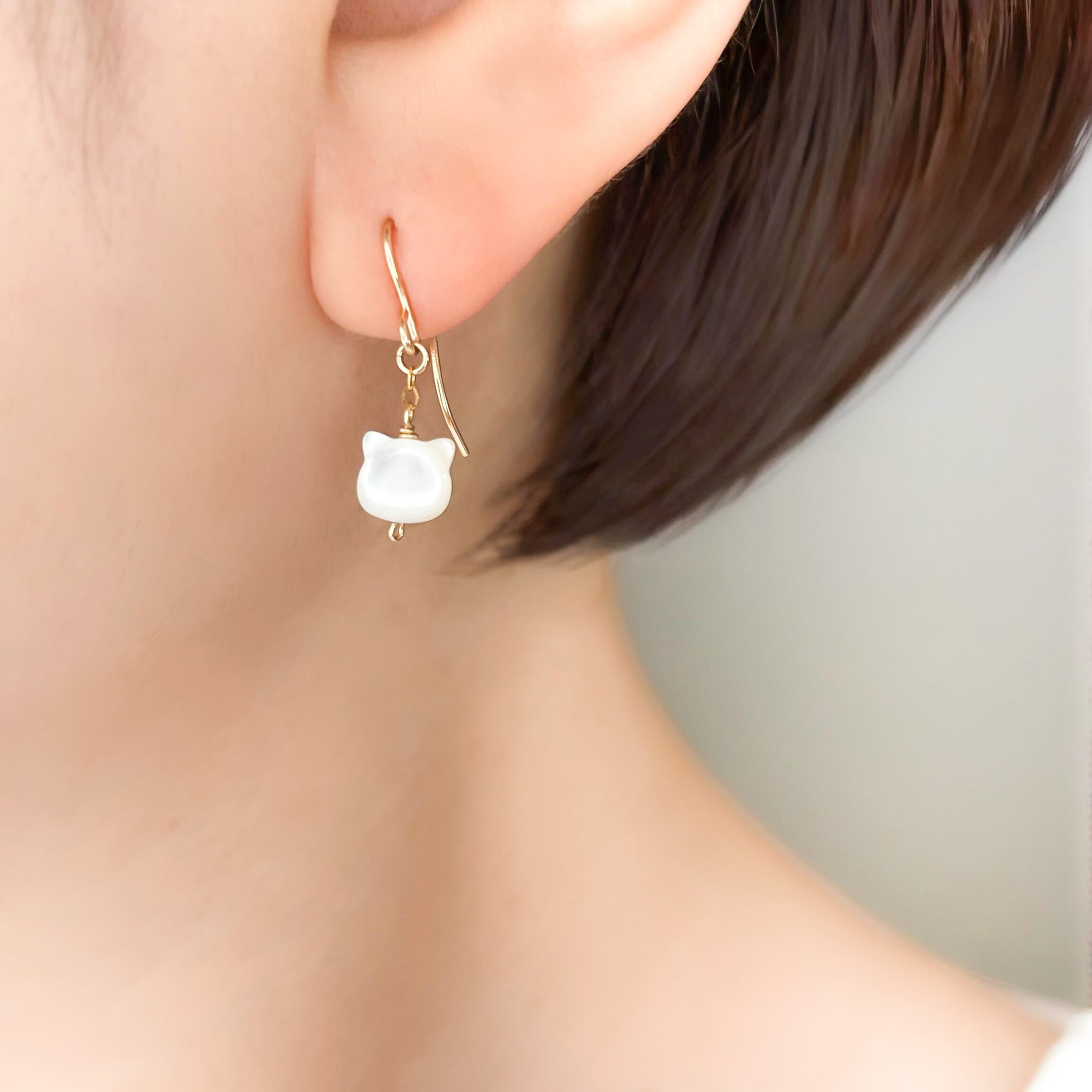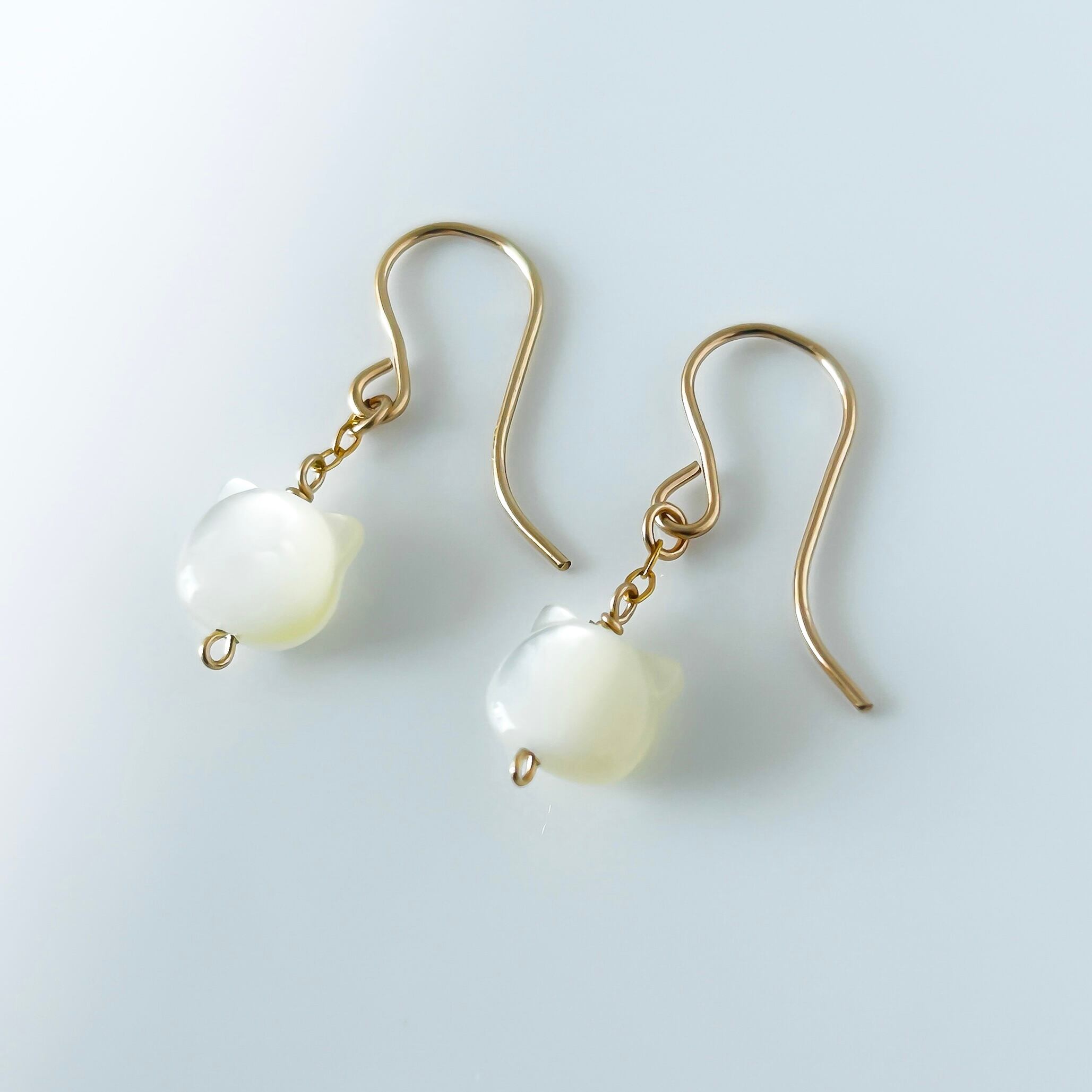 ころんと揺れる、小さなシェル猫のピアス(イヤリング)
