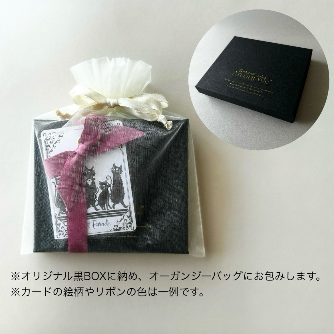 ・有料:黒いギフトボックス+リボン+オーガンジーバッグ